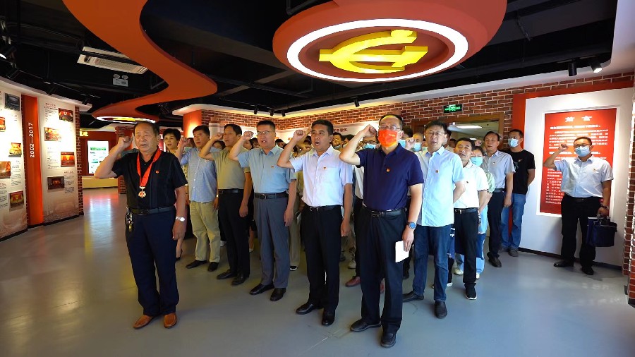 儀式最后,在紀(jì)念章獲得者王歷珍的帶領(lǐng)下,參加活動(dòng)的全體黨員舉起右手、握緊拳頭,一起重溫入黨誓詞,在一句句鏗鏘有力的誓詞中不斷堅(jiān)定初心使命,在一聲聲洪亮整齊的誓言中不斷汲取奮進(jìn)力量。