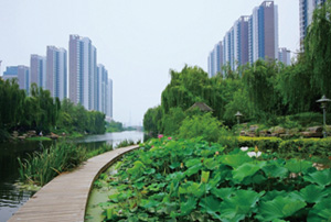 小清河是穿城而過的荊河支流,公司于2002年治理,沿河兩側(cè)各建設(shè)40佘米寬的綠化景觀帶,內(nèi)設(shè)親水平臺、大型景觀噴泉和沿河景觀步道等沿河景觀群落,在沿河兩岸形成寬達120米的小清河生態(tài)休閑長廊,充分體現(xiàn)了“—花、一木、一世界”的設(shè)計理念,形成水面、綠化帶、道路與高層建筑相映成輝的立體畫卷,初步形成了一條水清岸綠、燈明路暢、步步有景的城市生態(tài)景觀帶,被評為“山東省優(yōu)質(zhì)園林工程”,成為市民娛樂、休閑、游玩的好去處。