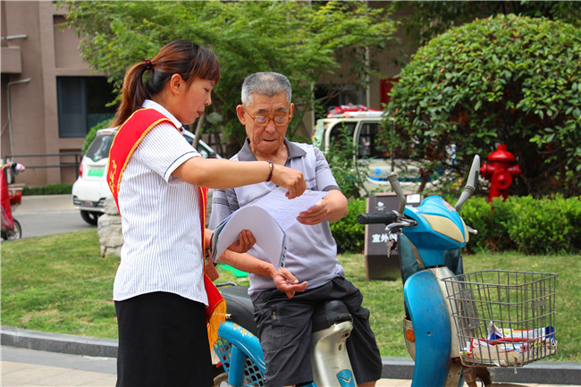 活動(dòng)中,工作人員通過向小區(qū)居民發(fā)放印有垃圾分類小常識的宣傳彩頁,組織大家參加“垃圾分類,從我做起”簽名活動(dòng),在小區(qū)樓道內(nèi)張貼垃圾分類宣傳海報(bào)、制作宣傳展板等形式,向廣大小區(qū)居民介紹、宣傳垃圾分類的好處和意義,使大家對垃圾分類的基礎(chǔ)知識有了更加詳細(xì)的了解和認(rèn)識。