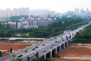 龍泉路大橋南起民政局,北至滕州賓館,全長千余米,設(shè)有雙向快、慢車道及人行道,于2000年10月開工建設(shè),2002年5月竣工通車。該大橋建成后,成為貫穿滕州東城區(qū)南北的交通要道,為滕州東城區(qū)人民出行帶來了極大便利。