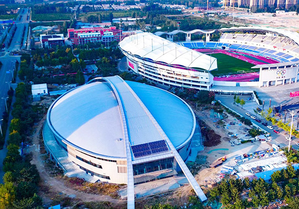 項目位于滕州奧體中心西南部,于2016年5月份開工,預計于2018年底交付使用,內(nèi)設(shè)座位約1500座,設(shè)25m×50m的標準10泳道游泳池,15m×25m的6泳道訓練池及兒童戲水池各一個,可舉辦各類大型賽事,成為滕州又一地標性建筑。