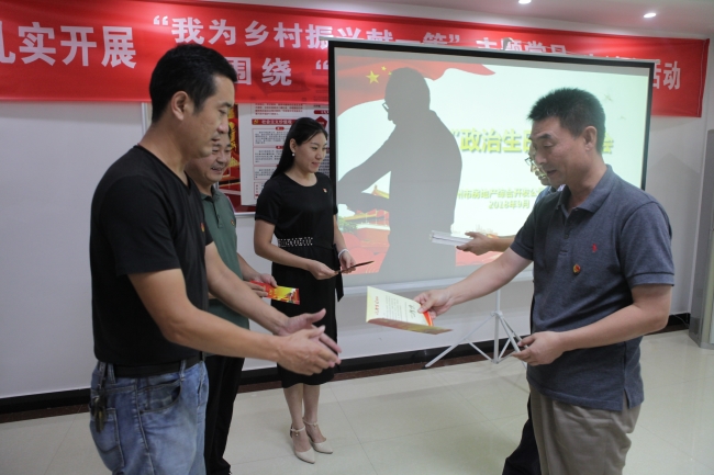“作為一名共產(chǎn)黨員,這是我上班以來(lái)第一次過(guò)政治生日,很激動(dòng),我要牢記這一天,記住我們黨員的責(zé)任和義務(wù),為公司發(fā)展貢獻(xiàn)全力?!?月11日,在開發(fā)公司黨支部“政治生日”座談會(huì)上,黨員張愛華從公司經(jīng)理彭立東,公司黨支部書記張峰手中接過(guò)生日賀卡、圖書后,激動(dòng)的說(shuō)。隨后,由張峰書記領(lǐng)誓,該支部全體黨員重溫了入